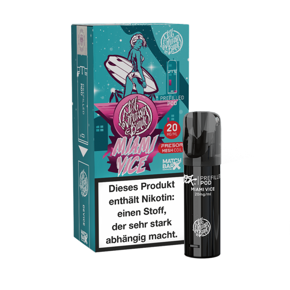 187 Strassenbande ist bekannt für ihre harten Texte und leckeren Shortfill-Liquids. Und genau das erwartet dich jetzt mit dem Miami Vice Pod.