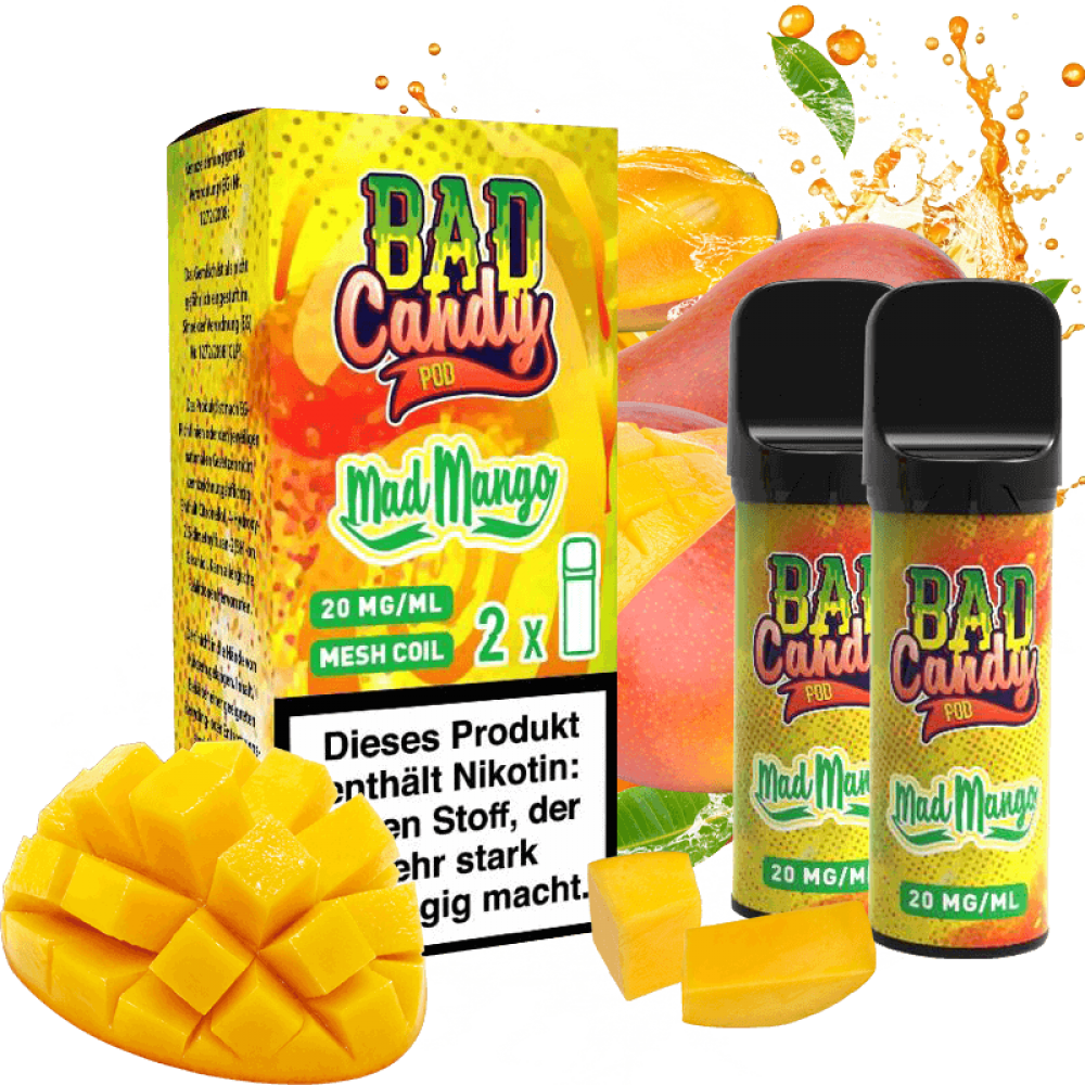 Die Bad Candy Pod2Go Pods erhältst du im praktischen 2er Pack. Durch die Verwendung von Bad Candy Nikotinsalz Liquid mit einer Stärke von 20 Milligramm je Milliliter erlebst du nicht nur einen reichhaltigen Geschmack, sondern auch einen angenehmen Nikotin-Kick ohne Kratzen im Hals.