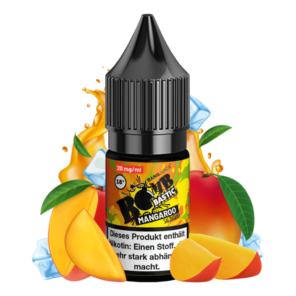 Ein Dschungel voller Mangobäume - glaubst du nicht? Dann solltest du das Mangaroo probieren. Eine Ladung BOMBBASTIC reifer Mangos haben ihren Weg in diese kleinen Flaschen gefunden, um dich mit ihrem fruchtig-süßen und dezent frischen Geschmack zu bereichern. Die Verwendung von Nikotinsalz garantiert dabei einen sanften Flash und unverfälschten Geschmack.