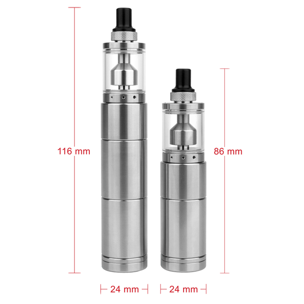 Hochwertige Materialien verleihen dem E-Zigaretten Set ein elegantes Design und sorgen für ein angenehmes Handgefühl. Mit seiner Höhe von 86 mm (unter Verwendung eines 18650er Akkus) liegt der Tube Mod perfekt in der Hand und lässt sich problemlos bedienen. Mit nur wenigen Handgriffen kannst du den Tube Mod sogar zu einem kleinen 18350er Akkuträger umbauen. Der Feuertaster befindet sich bei diesem Modell an der Unterseite und kann bequem mit dem kleinen- oder Ringfinger betätigt werden. Wenn dir nach einer Pause ist und du das Kit gerade nicht nutzen möchtest, kannst du es über den mechanischen Verschlussring sperren, sodass der Stromkreis unterbrochen wird.