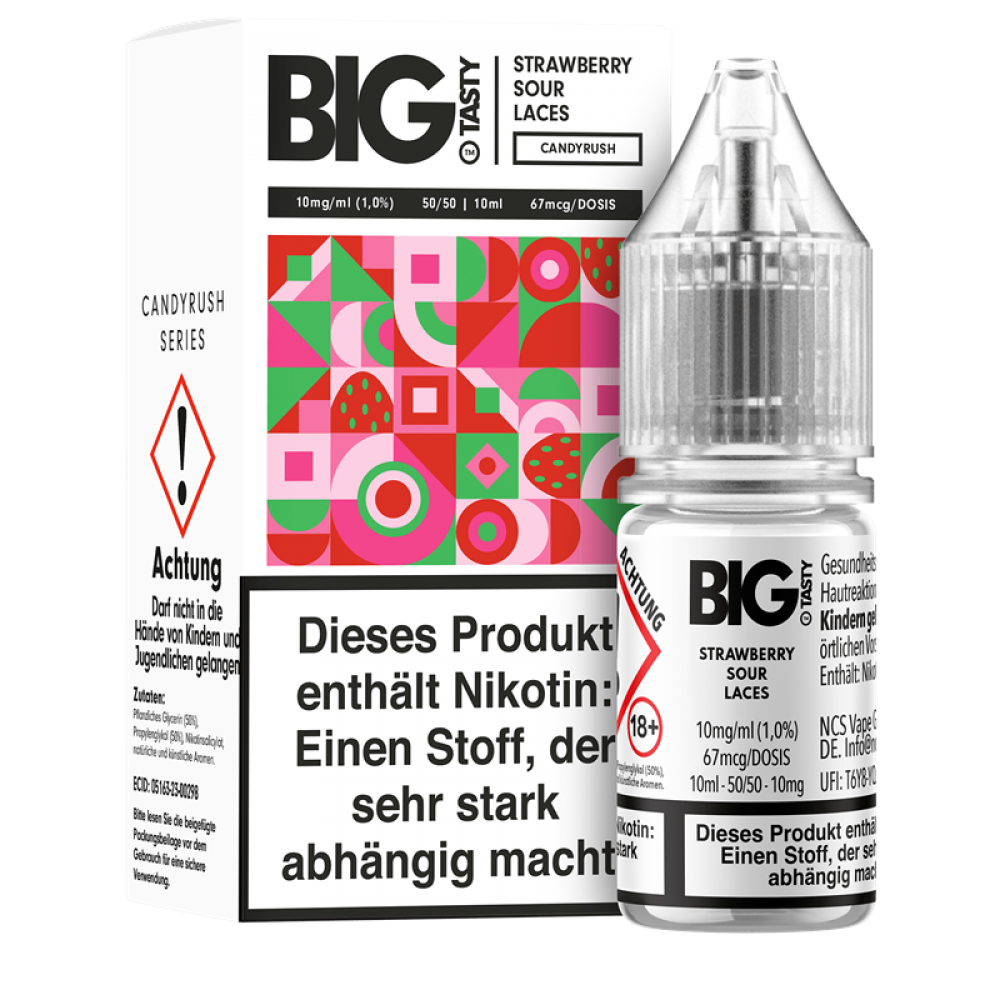 Big Tasty Candyrush Serie - Strawberry Sour Laces - 10 ml Nikotinsalz Liquid