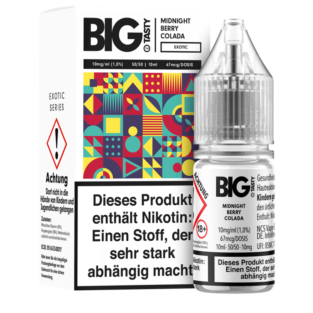 Als renommierter Hersteller im Bereich der E-Liquids und Aromen zeichnet sich Big Tasty durch die Hingabe zur Perfektion in Geschmack und Qualität aus. Mit einer beeindruckenden Palette von Aromen bietet Big Tasty unvergleichliche Produkte, die durch sorgfältig abgestimmte Mischungen von hochwertigen Inhaltsstoffen gekennzeichnet sind. Die Marke steht für Innovation, Präzision und maximalen Genuss, weswegen ihre Produkte von Dampfern weltweit geschätzt werden.