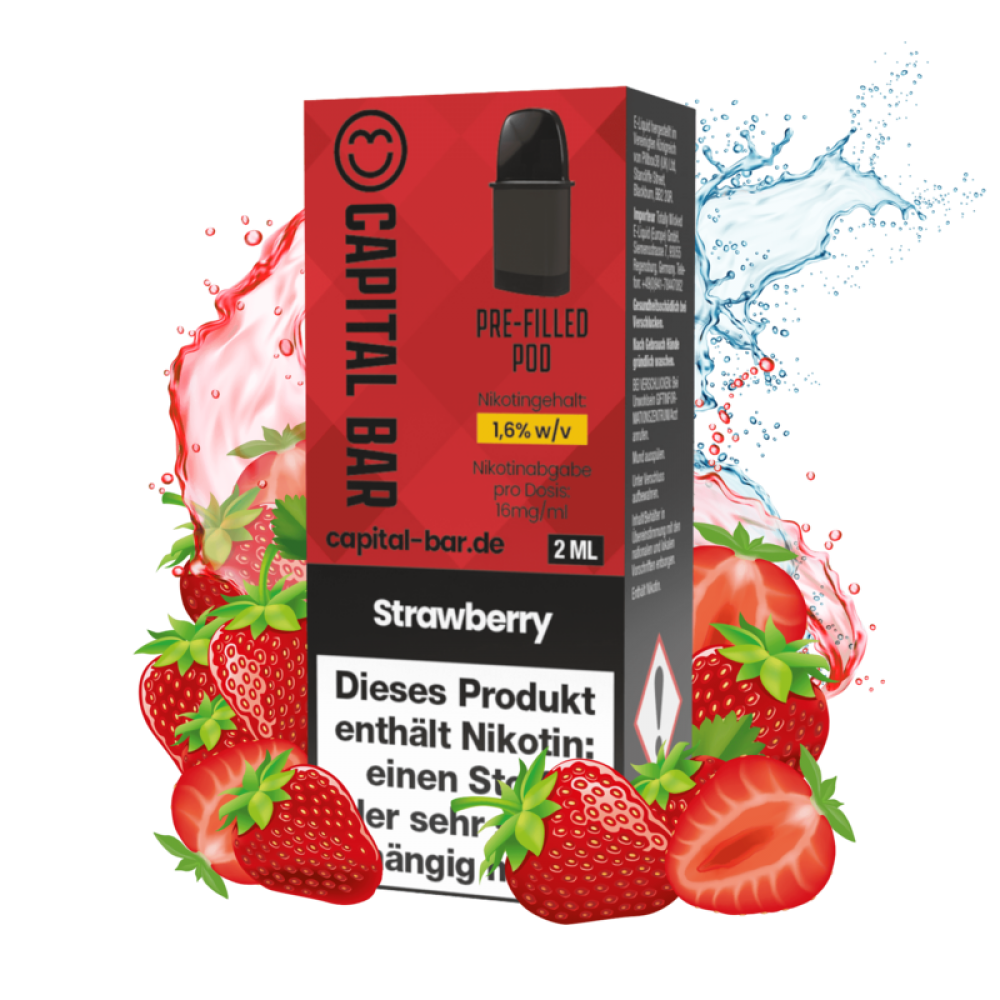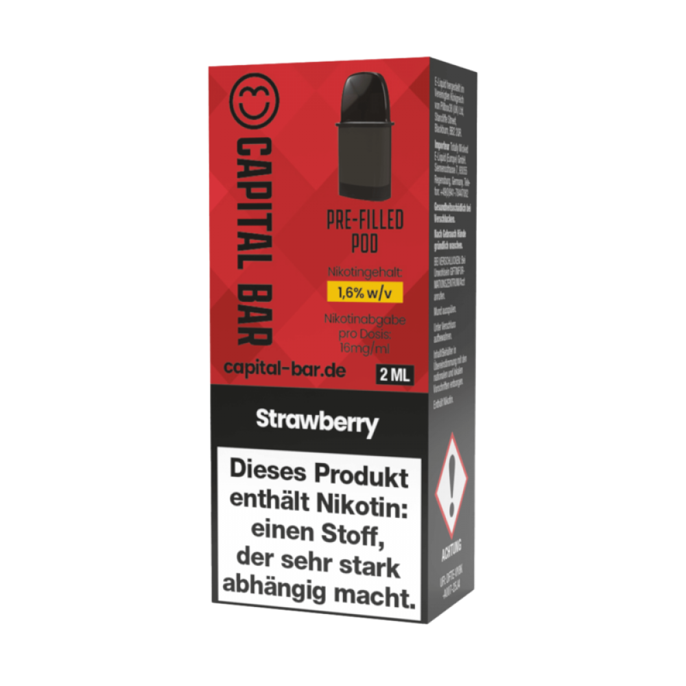 Die Capital BAR Strawberry Pod-Kartusche im 1er Pack ist speziell für dein Capital BAR Pod Mod konzipiert. Mit einer Füllmenge von 2 ml E-Liquid und einer Nikotinstärke von 16 mg/ml überzeugt sie durch ein ansprechendes Design sowie exzellenten Geschmack von süßen Erdbeeren. Jede Capital BAR Pod-Kartusche ermöglicht bis zu 600 Züge und verspricht ein erstklassiges Dampferlebnis.