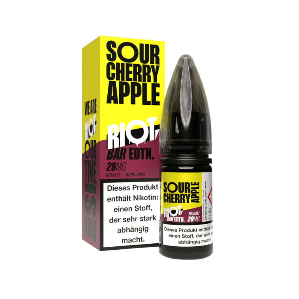 Entdecke das Sour Cherry Apple von RIOT SQUAD. Das Aroma von köstlichen Sauerkirschen und der Süße eines erntereifen Apfels verschmelzen zu einem grandiosen E-Liquid. Für alle, die es besonders sauer auf der Zunge mögen. Abgerundet mit feinstem Nikotinsalz, wird dieses E-Liquid zu einem wahren Geschmackserlebnis.