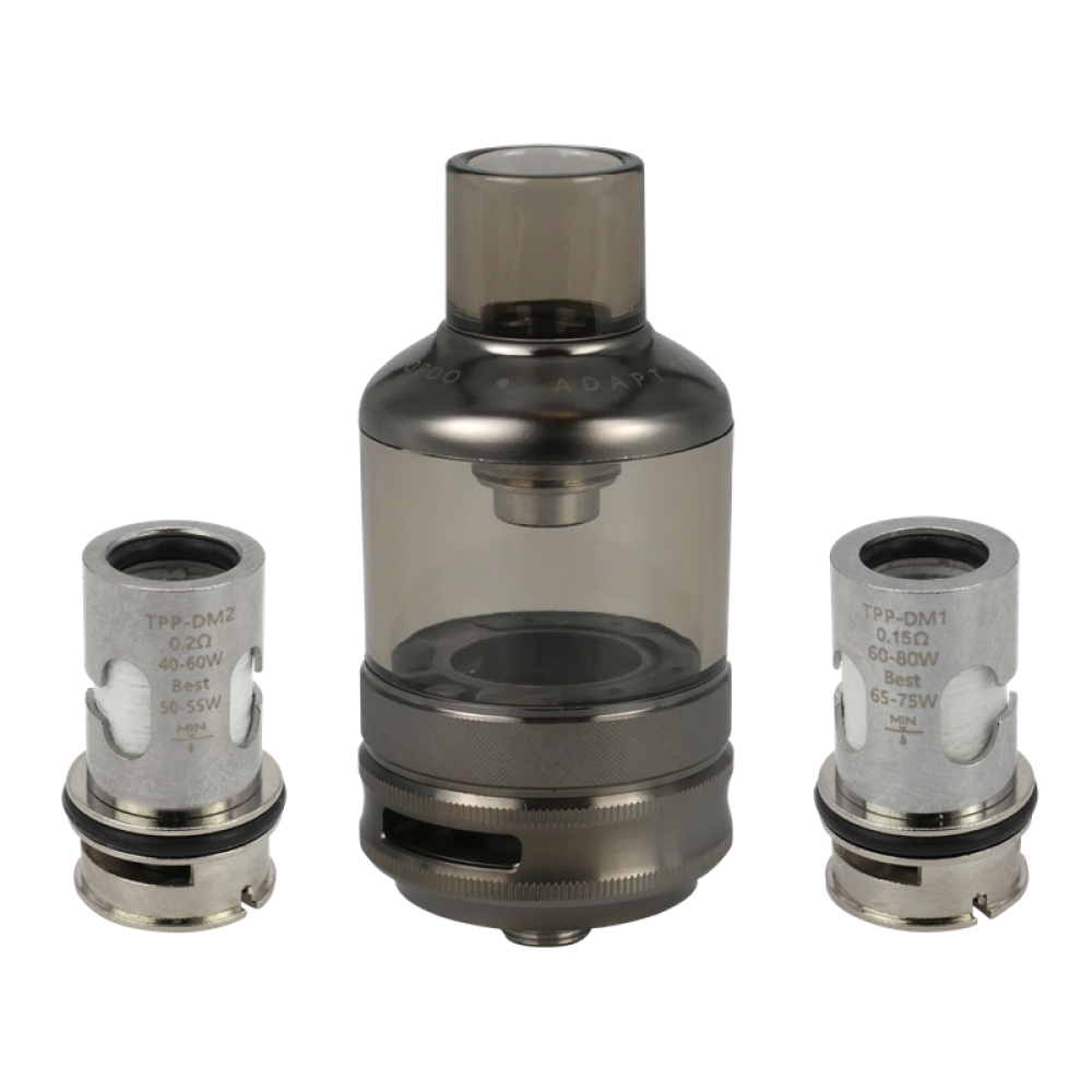 Der TPP DM1 Coil hat einen Widerstand von 0,15 Ohm und einen vom Hersteller empfohlenen Leistungsbereich von 60 bis 80 Watt. Der zweite Coil ist der TPP DM2 mit einem Widerstand von 0,2 Ohm und einem Leistungsbereich von 40 bis 60 Watt.