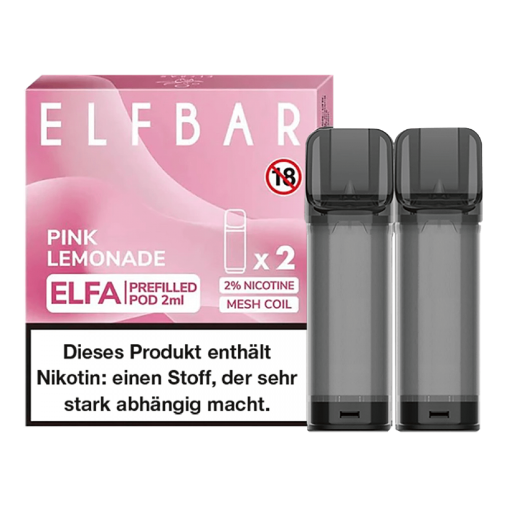 Die 2er Packs ELF Bar ELFA Pink Lemonade Pods sind vorbefüllte Pod-Kartuschen für dein ELF Bar ELFA Pod Mod. Sie enthalten 2 ml Nikotinsalz Liquid mit einer Nikotinstärke von 20 mg/ml und überzeugen dank der verwendeten Meshed-Technologie mit einem hervorragenden Geschmack von säuerlicher Zitronenlimo und handverlesenen roten Früchten. Jede ELFA Pod-Kartusche kann für bis zu 600 Züge verwendet werden.