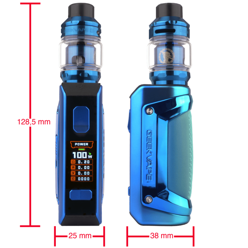 Mit dieser Akkuzelle feuert der Box Mod mit bis zu 100 Watt und über den USB-C-Anschluss kann der Akku auch mal unterwegs ganz einfach aufgeladen werden. Wir empfehlen allerdings das Aufladen über ein externes Ladegerät. Über den 1,08" großen Farbbildschirm kannst du alle relevanten Einstellungen sehen sowie das benutzerfreundliche Menü mit den Plus- und Minustasten bedienen.