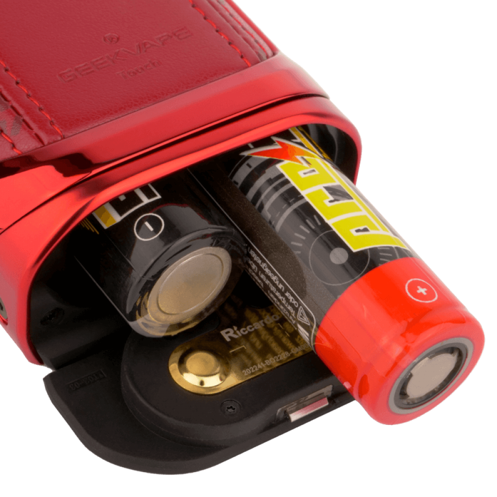 Der T200 wird betrieben durch zwei 18650er Akkuzellen (nicht im Lieferumfang enthalten) und feuert mit bis zu unglaublichen 200 Watt. Neben dem Touch-Display auf der linken Seite befindet sich ein Schieberegler, der als Tastensperre dient. Auf der rechten Seite findest du einen klassischen Feuertaster und darunter einen USB-C-Anschluss über den du die Akkuzellen aufladen kannst. Wir empfehlen dir allerdings nach Möglichkeit immer ein externes Ladegerät zu nutzen um deine Akkuzellen zu schonen.