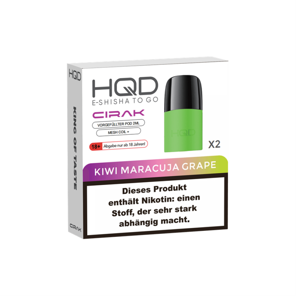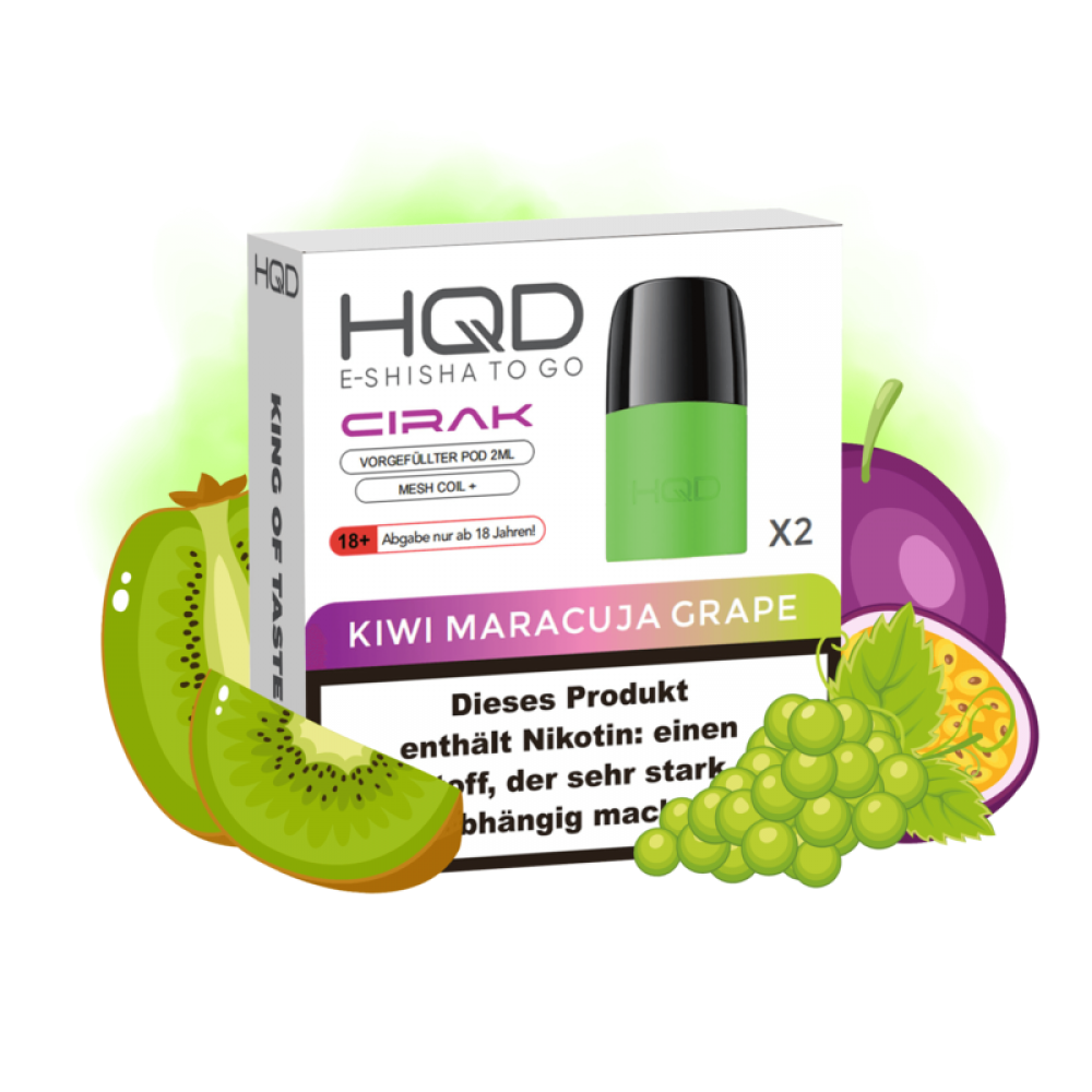 Erlebe den Geschmack von aromatischer Kiwi in Kombination mit exotischer Maracuja und saftigen Trauben und schnapp dir jetzt die ideale Ergänzung zu deinem HQD Cirak Pod Mod!