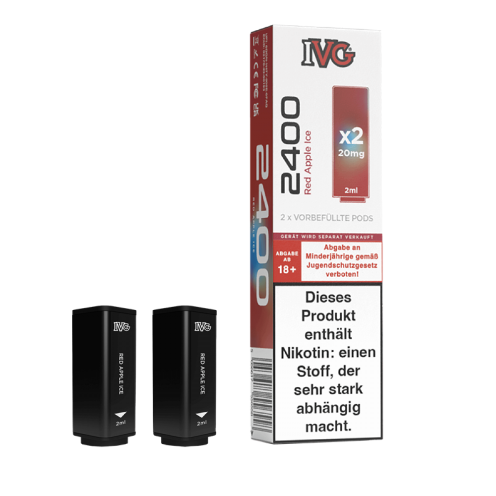 Erlebe jetzt die praktischen vorbefüllten Pod-Kartuschen für dein IVG 2400 4 in 1 Pod System. Das praktische 2er Pack bietet dir pro Kartusche ganze 2 ml Nikotinsalz Liquid mit 20 mg/ml. Probiere jetzt das saftige-süße Aroma eines roten Apfels mit angenehmer Frische. Mit bis zu 600 MTL Zügen pro Kartusche ist auch der längste Tag, kein Problem. Jetzt zugreifen und losdampfen!