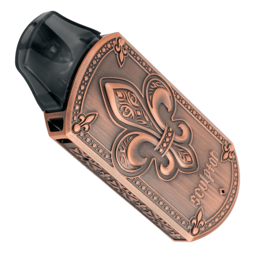 Der Sculptor wird durch ein antikes, metallisches Prägemuster verziert, was eine einzigartige Kombination aus Leistung und Ästhetik darstellt. Die kompakte und schlanke Form des Sculptor liegt gut in der Hand und fühlt sich durch die verwendeten Materialien sehr hochwertig an. Die Metallkette, die an den beiden Lanyard-Halterungen befestigt wird, lässt den Sculptor wie ein echtes Schmuckstück aussehen.