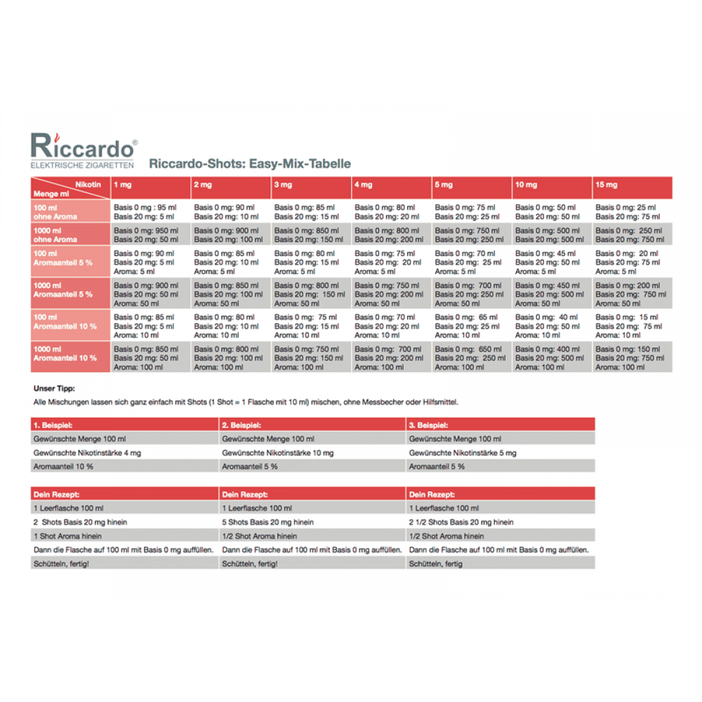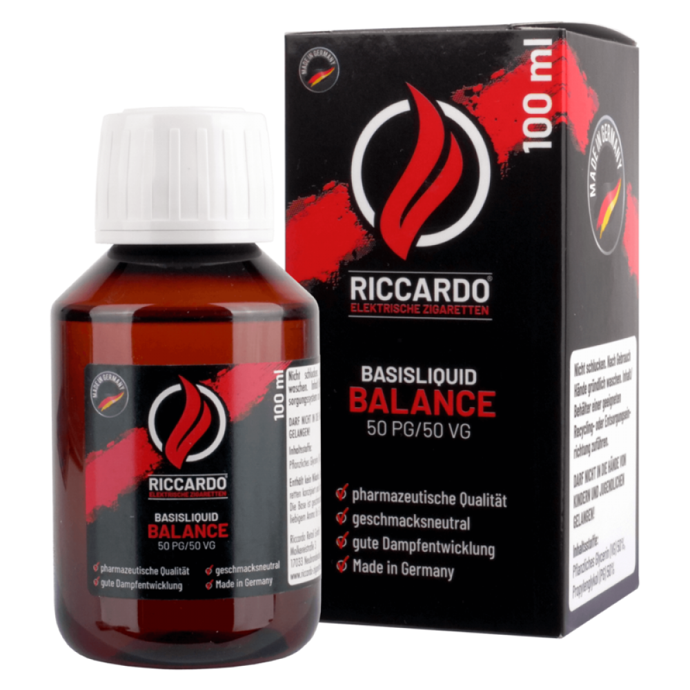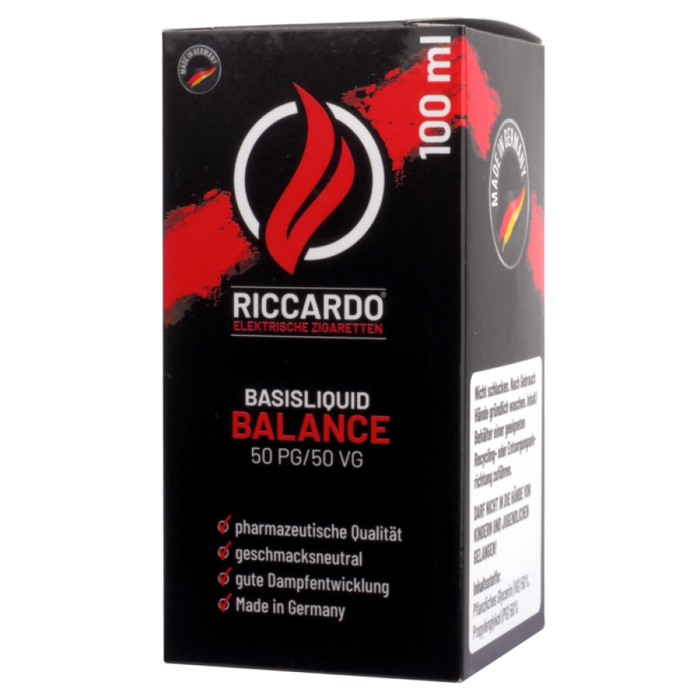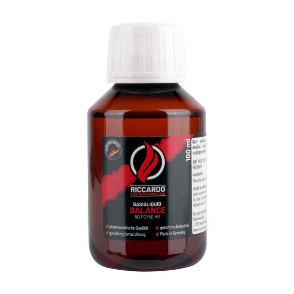 Mit dem Riccardo Basisliquid Balance erhältst du 100 ml Base zum Herstellen von E-Liquid. Das Mischungsverhältnis von 50% VG / 50% PG sorgt hierbei für eine ausgewogene Geschmacksentfaltung mit angenehmer Dampfentwicklung und lässt sich ideal in E-Zigaretten und Pod Systemen verwenden.