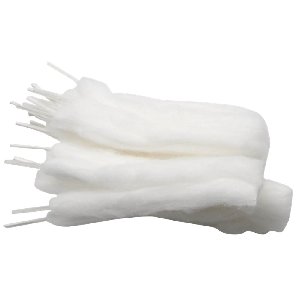 Die perfekte Watte für dein Wickeldeck kommt direkt aus dem Hause Vapefly. Du sparst extrem viel Zeit ein, da die Watte schon in die ideale Länge von 7 cm gebracht wurde. Der Durchmesser liegt bei circa 3,0 mm und ist damit für die meisten Verdampfer perfekt geeignet. Als wäre das nicht schon genug des Guten, kommt die Watte direkt aus Japan und ist 100 % biologisch ohne Aceton und Klebreste, wodurch es zu keinerlei Eigengeschmack kommt.