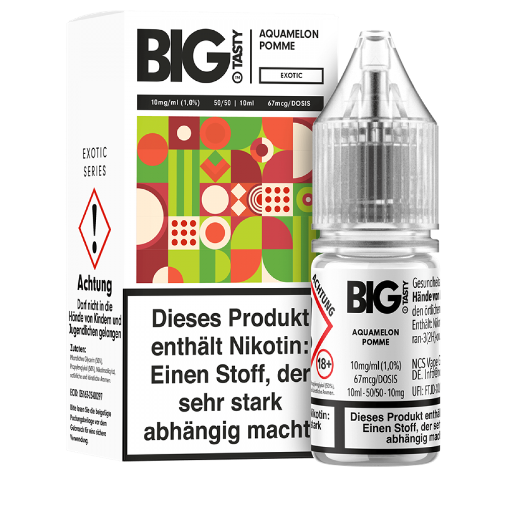 Als renommierter Hersteller im Bereich der E-Liquids und Aromen zeichnet sich Big Tasty durch die Hingabe zur Perfektion in Geschmack und Qualität aus. Mit einer beeindruckenden Palette von Aromen bietet Big Tasty unvergleichliche Produkte, die durch sorgfältig abgestimmte Mischungen von hochwertigen Inhaltsstoffen gekennzeichnet sind. Die Marke steht für Innovation, Präzision und maximalen Genuss, weswegen ihre Produkte von Dampfern weltweit geschätzt werden.