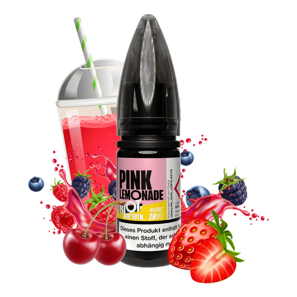 Erlebe den Sommer mit Pink Lemonade von RIOT SQUAD. Fruchtige Sommerbeeren vereinen sich mit erfrischender Limonade zu einem unbeschreiblich köstlichen Mix. Für das perfekte Dampferlebnis wird dieses E-Liquid mit hochwertigstem Nikotinsalz verfeinert.