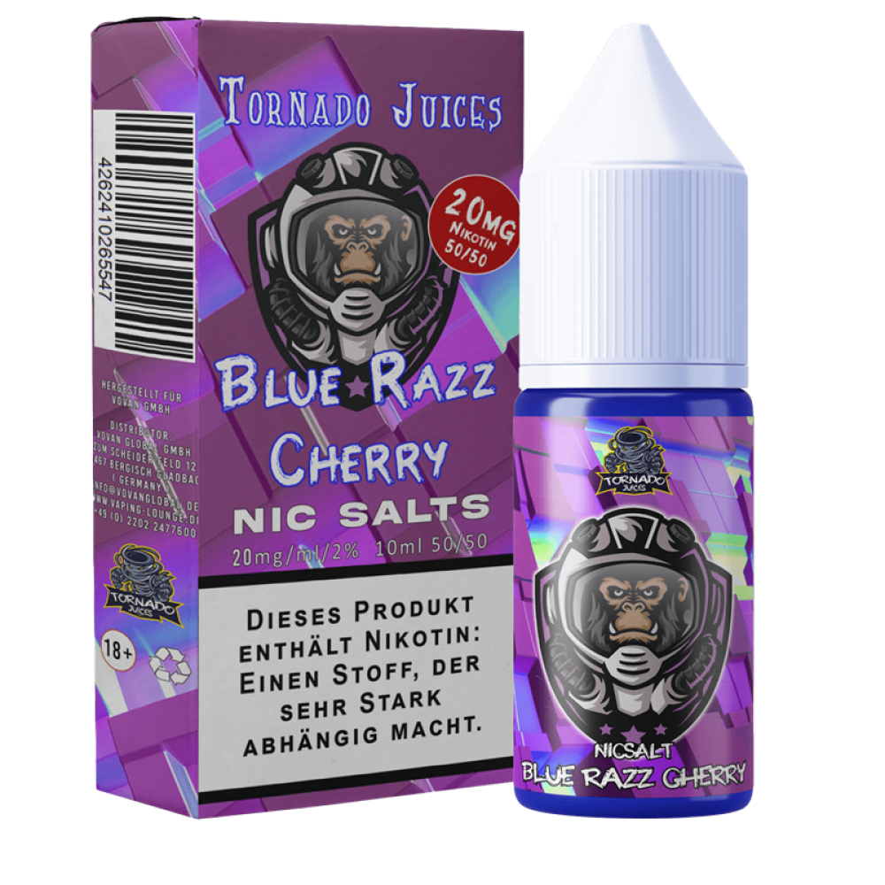 Mach dich bereit für einen Geschmackssturm von epischen Ausmaßen mit dem Tornado Juices Nikotinsalz Liquid! Diese exklusive Kreation ist genau das Richtige für anspruchsvolle Dampfer, die nach lebhaften und intensiven Aromen suchen. Genieße den belebenden Genuss von süßen Blaubeeren, umgeben von einem üppigen Meer aus sauren Kirschen.