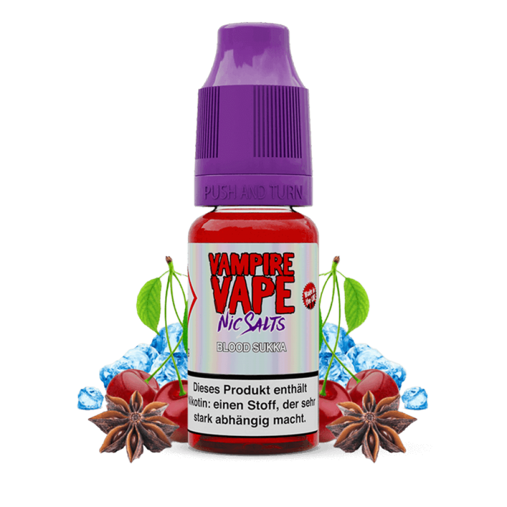 Verbessere dein Dampferlebnis mit dem Blood Sukka Nikotinsalz Liquid. Diese einzigartige Komposition aus saftigen Kirschen, leckeren Waldfrüchten, beruhigendem Eukalyptus und würzigem Anis wird deinen Gaumen verzaubern. Entdecke diese fantastischen Geschmäcker und lass dich von diesem Leckerbissen verführen. Um dir ein noch angenehmeres Dampferlebnis zu bieten, wird ein hochwertiges Nikotinsalz verwendet, welches eine schnellere Aufnahme von Nikotin im Blut zu ermöglicht.