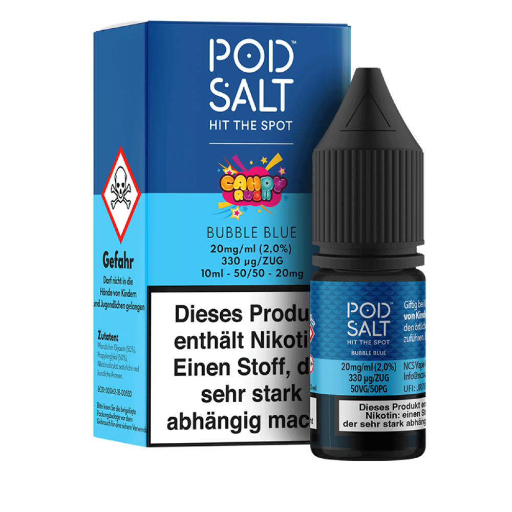 Der Hersteller Pod Salt hat mit seiner Fusion-Reihe eine wahre Meisterleistung vollbracht: Die perfekte Verbindung der beliebtesten Geschmacksrichtungen verschiedener Hersteller mit hochkonzentriertem Nikotinsalz. Entdecke eine erlesene Auswahl an authentischen Klassikern und unvergleichlichen Geschmackserlebnissen, speziell entwickelt für das genussvolle MTL-Dampfen. Genieße mit Blue Bubble den Geschmack eines Retro Kaugummis, verfeinert mit süßen Früchten und erlebe so eine geschmackvolle Reise zu den beliebten Candy Rush E-Liquids.