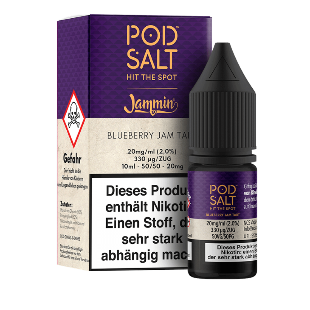 Der Hersteller Pod Salt hat mit seiner Fusion-Reihe eine wahre Meisterleistung vollbracht: Die perfekte Verbindung der beliebtesten Geschmacksrichtungen verschiedener Hersteller mit hochkonzentriertem Nikotinsalz. Entdecke eine erlesene Auswahl an authentischen Klassikern und unvergleichlichen Geschmackserlebnissen, speziell entwickelt für das genussvolle MTL-Dampfen. Genieße mit Blueberry Jam Tart den Geschmack einer englischen Blaubeermarmelade, umhüllt von einer zarten Teigkruste und erlebe so eine geschmackvolle Reise zu den beliebten Jammin E-Liquids.