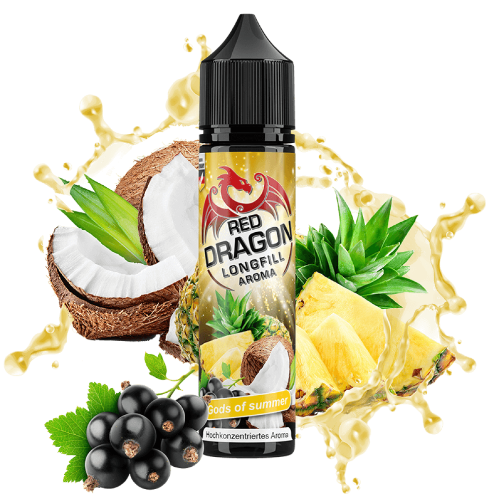 Bist du reif für die Insel? "Gods of Summer" bringt deine Geschmacksnerven definitiv in Urlaubsstimmung! Saftige Johannisbeeren veranstalten eine ausgelassene Geschmacksparty zusammen mit fruchtiger Ananas und aromatischer Kokosnuss. Ein fruchtiges Spektakel wartet auf dich!