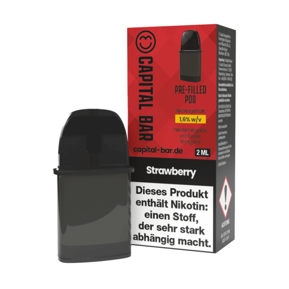 Die Capital BAR Strawberry Pod-Kartusche im 1er Pack ist speziell für dein Capital BAR Pod Mod konzipiert. Mit einer Füllmenge von 2 ml E-Liquid und einer Nikotinstärke von 16 mg/ml überzeugt sie durch ein ansprechendes Design sowie exzellenten Geschmack von süßen Erdbeeren. Jede Capital BAR Pod-Kartusche ermöglicht bis zu 600 Züge und verspricht ein erstklassiges Dampferlebnis.