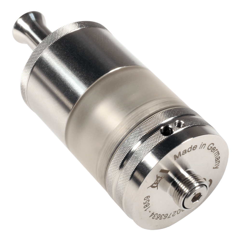 Der Verdampfer hat eine Liquidkapazität von 4 ml und kann über das altbewährte Bottom-Fill-System mühelos befüllt werden. Im Inneren des Verdampfers befindet sich ein Single-Coil-Wickeldeck, welches du mit einfachen Runddraht-Coils oder auch massiven Custom-Coils bestücken kannst. Aussparungen unterhalb der Sechskantschrauben unterstützen dich bei der Befestigung der Coilenden und helfen dir dabei, die Coils richtig zu positionieren. Die Luftzufuhr hat einen Durchmesser von 1,2 mm und befindet sich direkt unter der Coil. Den Zugwiderstand kannst du über die äußere Airflow regulieren, indem du eines der Luftlöcher mit einer Madenschraube verschließt.