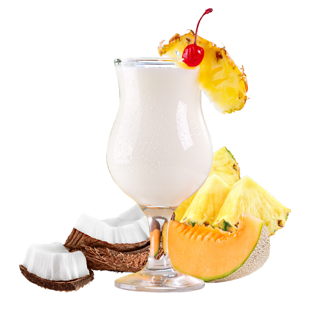 Das einzigartige Geschmackserlebnis von einem köstlichen Pina Colada, serviert unter Palmen. Der exotische Genuss einer Kokosnuss, gereift an einem Sandstrand auf einer tropischen Paradiesinsel, verfeinert mit frisch-saftiger Ananas.