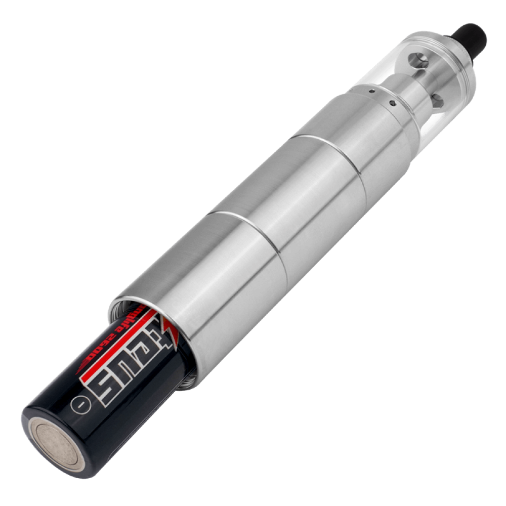 Hochwertige Materialien verleihen dem E-Zigaretten Set ein elegantes Design und sorgen für ein angenehmes Handgefühl. Mit seiner Höhe von 86 mm (unter Verwendung eines 18650er Akkus) liegt der Tube Mod perfekt in der Hand und lässt sich problemlos bedienen. Mit nur wenigen Handgriffen kannst du den Tube Mod sogar zu einem kleinen 18350er Akkuträger umbauen. Der Feuertaster befindet sich bei diesem Modell an der Unterseite und kann bequem mit dem kleinen- oder Ringfinger betätigt werden. Wenn dir nach einer Pause ist und du das Kit gerade nicht nutzen möchtest, kannst du es über den mechanischen Verschlussring sperren, sodass der Stromkreis unterbrochen wird.
