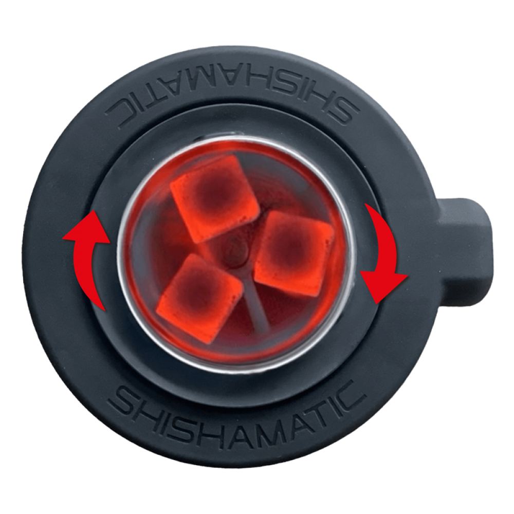 Mit dem Shishamatic HMD gibt es keinen angebrannten Tabak mehr, da durch die Rotation die Hitze der Kohle gleichmäßig über den gesamten Tabak verteilt wird. Hier sorgt Innovation für einen bequemen Shishagenuss!