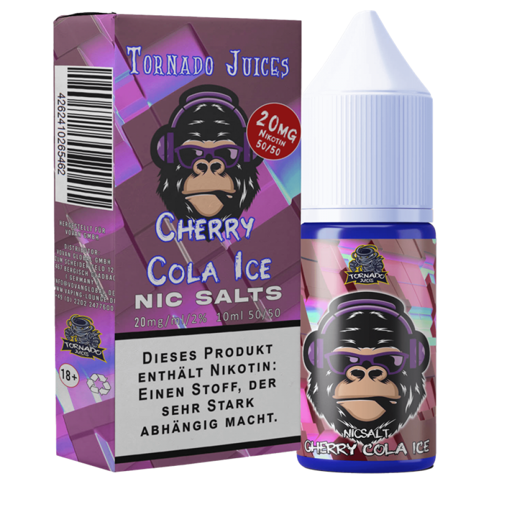Mach dich bereit für einen Geschmackssturm von epischen Ausmaßen mit dem Tornado Juices Nikotinsalz Liquid! Diese exklusive Kreation ist genau das Richtige für anspruchsvolle Dampfer, die nach lebhaften und intensiven Aromen suchen. Genieße den belebenden Genuss von sauren Kirschen und prickelnder Cola, umgeben von einem üppigen Meer aus eisiger Luft.