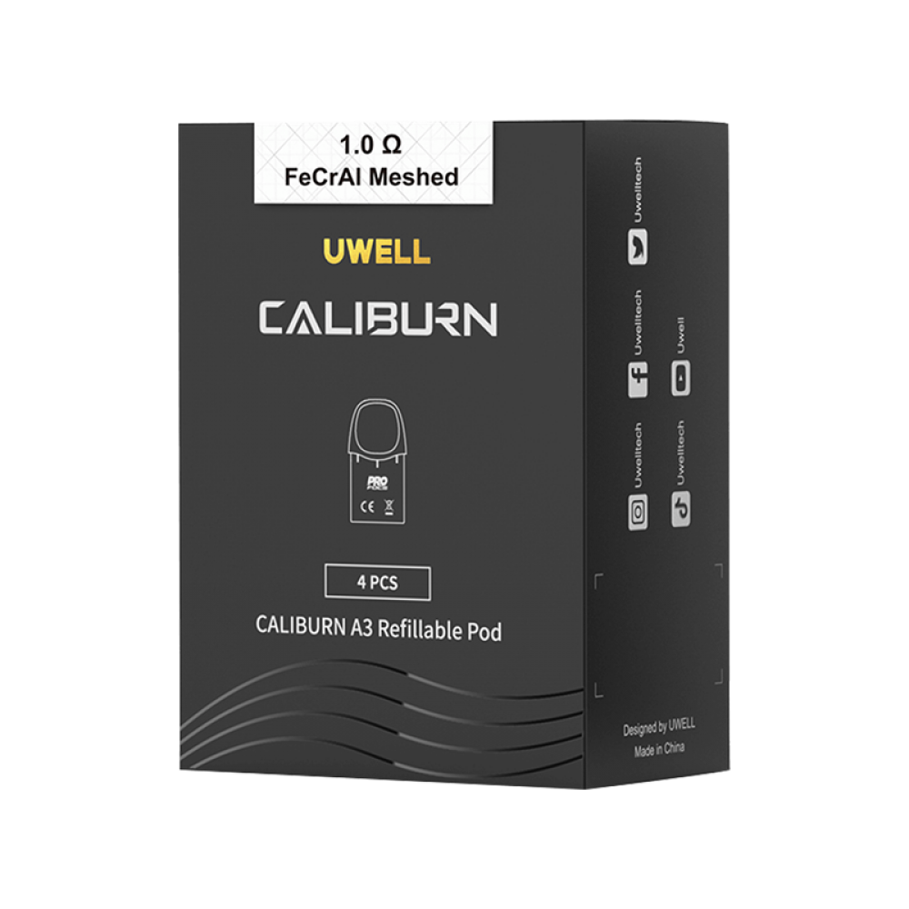 Dieses 4er Pack Pod-Kartuschen ist ideal geeignet als Ersatz für dein Uwell Caliburn A3 / AZ3 Pod System. DIe Kartuschen haben eine Liquidkapazität von jeweils 2 ml und einen integrierten Verdampferkopf mit einem Widerstand von 1,0 Ohm.