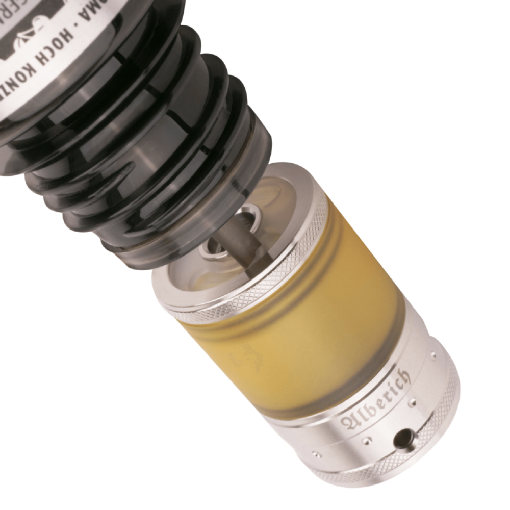 Frisch aus Vapefly's Produktions-Schmiede erhebt sich der königliche Alberich MTL RTA, der von einem wechselbaren 510er Drip-Tip gekrönt wird. Mit seinem Durchmesser von 22 mm passt er nahezu auf jeden Akkuträger und verschönert das Gesamtbild stilsicher.