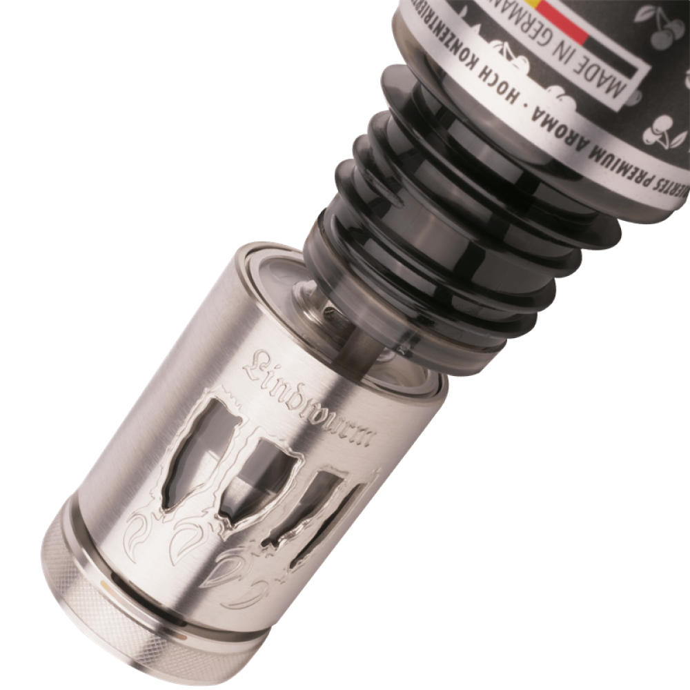 Die wilde Bestie erscheint in Gestalt eines monströs geschmacksintensiven Selbstwicklers und die Schlacht um die Vormacht des besten Single-Coil-Verdampfers kann beginnen. Dieser Edelstahl-Verdampfer hat eine Höhe von 59,1 mm und einen Durchmesser von 25,2 mm. Befüllt wird der Lindwurm RTA über ein einfaches Top-Fill-System. Dafür wird die Top-Cap mit Bajonettverschluss geöffnet und danach kann der Lindwurm RTA über die zwei großen Liquidöffnungen mit 5 ml E-Liquid gefüllt werden.