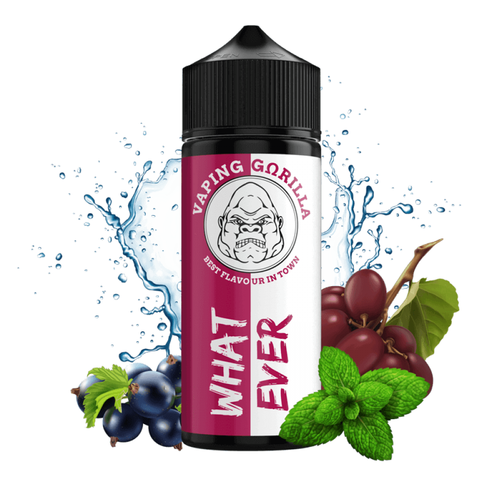 Sind wir mal ehrlich: Irgendwie wird fast alles lecker, wenn man es mit schwarzen Johannisbeeren mischt. Trotzdem kommen wir nicht umhin, Vaping Gorilla für ihr "What Ever" ein dickes Lob auszusprechen. Hier trifft die allseits beliebte Johannisbeere (oder auch Cassis genannt) nämlich auf wunderbar süße Weintrauben und einen leichten Frischekick durch etwas Minze.