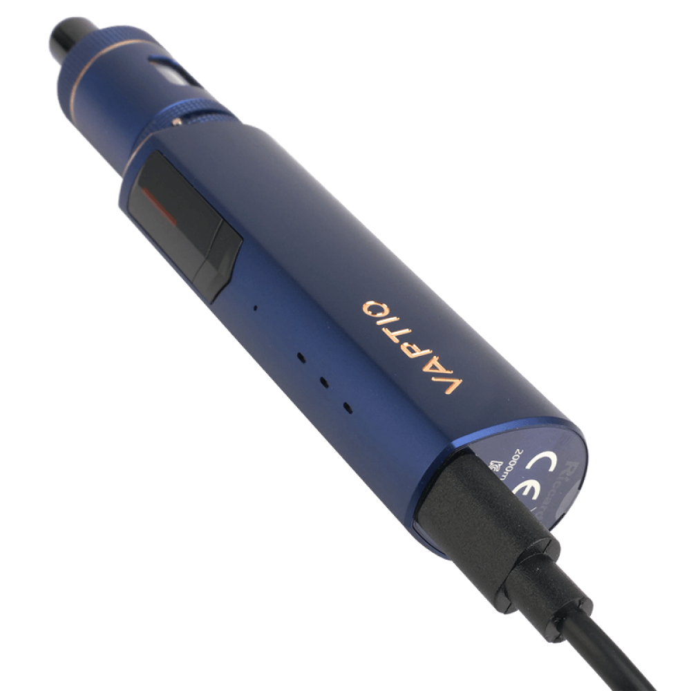 Auf der Front des Akkuträgers befinden sich neben dem Feuertaster eine weitere Taste, mit der du deine bevorzugte Leistungsstufe einstellen kannst. Unterhalb der Tasten gibt es drei LED Streifen, die als Indikator für die aktuell verwendete Leistungsstufe stehen. Leuchtet nur eine LED, befindest du dich im Low-Modus, hierbei wird am wenigstens Strom verbraucht, folglich auch am wenigsten Dampf erzeugt. Du hast insgesamt drei Leistungsstufen zur Auswahl (Low, Medium, High). Eine weitere LED informiert dich über den Ladestand des fest verbauten 2000 mAh Akkus (rot < 30 %, blau > 30 %). Das Laden des integrierten Akkus über den USB-C-Anschluss funktioniert dank der Schnellladefunktion tadellos und ist innerhalb kürzester Zeit erledigt. Zusätzlich hat Vaptio mehrere Schutzfunktionen (siehe technische Details) integriert, denn Sicherheit hat oberste Priorität.